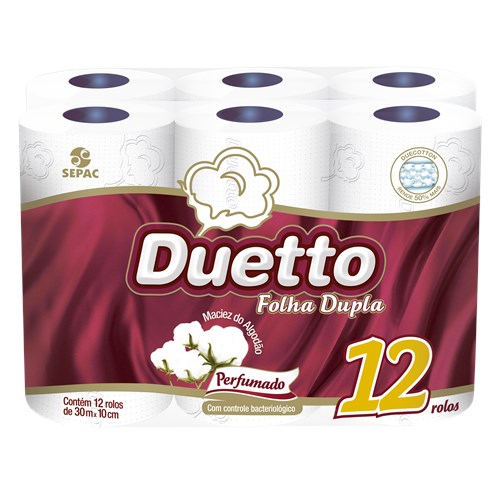 Papel Higiênico Duetto Folha Dupla Perfumado 12 Rolos 30M